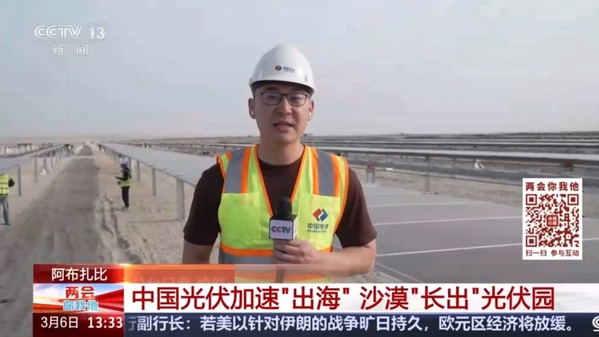 3月6日,中央廣播電視總臺全國兩會期間特別節目《兩會你我他》報道公司所屬華東院總承包的阿聯酋阿布扎比PV3阿吉班光伏項目。項目位于阿布扎比東北部,場區占地面積約20平方千米,項目直流側總裝機容量約1.8GW。該工程是阿聯酋政府落實“阿聯酋2050能源戰略”的重要項目之一,項目建設過程中將提供3000余個工作崗位,為當地居民就業提供支持。建成后,每年將為16萬戶家庭提供清潔能源,減少240萬噸二氧化碳排放。 報道鏈接:https://tv.cctv.com/2026/03/06/VIDEaE54OeOF7mZDwxEYLlY2260306.shtml 《兩會你我他》報道華東院總承包的阿聯酋阿布扎比PV3阿吉班光伏項目 機械臂開展作業 |